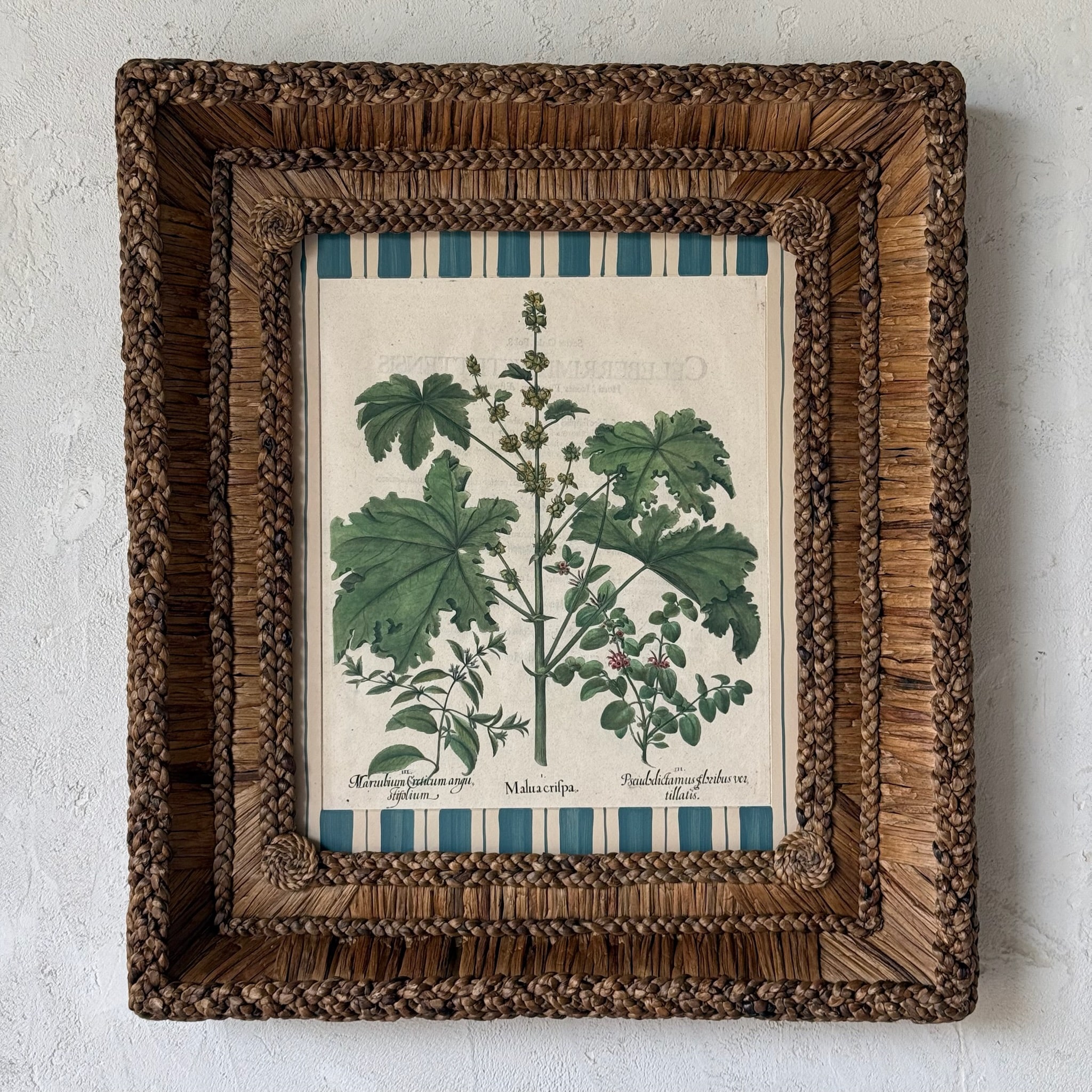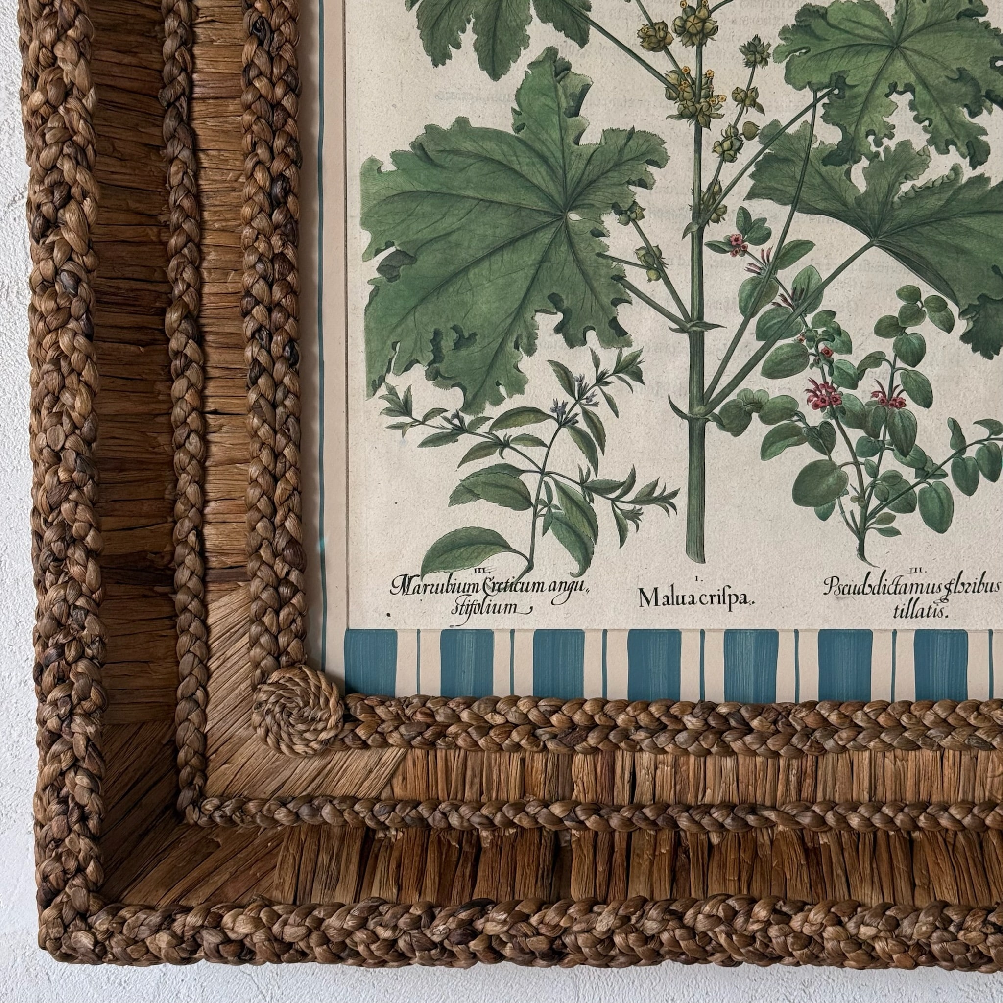 Besler Botanical Engraving encased in our hand-tied and knotted Gusto Woven Frame.