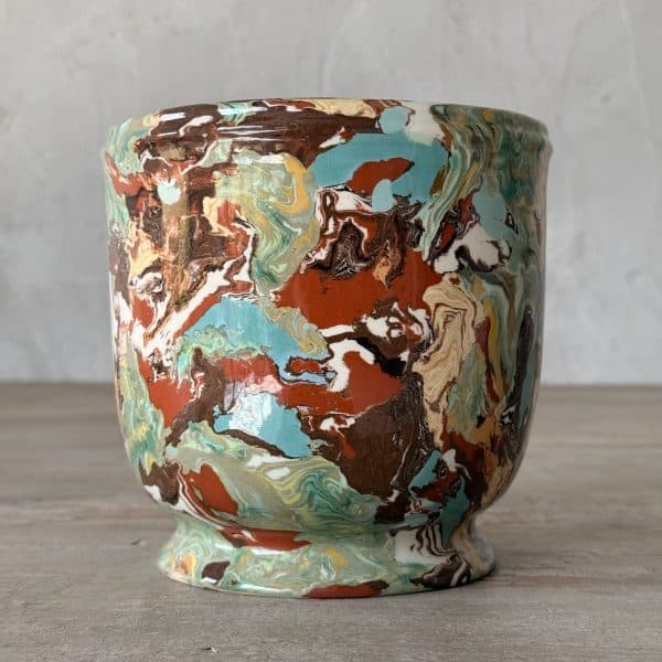 The long and meticulous technique consists of mixing different color clays in a completely arbitrary, yet fully mastered manner. It is a rigorous play with the volumes formed by the kneading of colored clay, obtained by the mixing of white clay with natural pigments. (iron, copper). Each piece, which is unique, requires several hours of manufacturing. The project is to carry on this old technique of refined artistic craftsmanship applied to everyday decorative dishes.