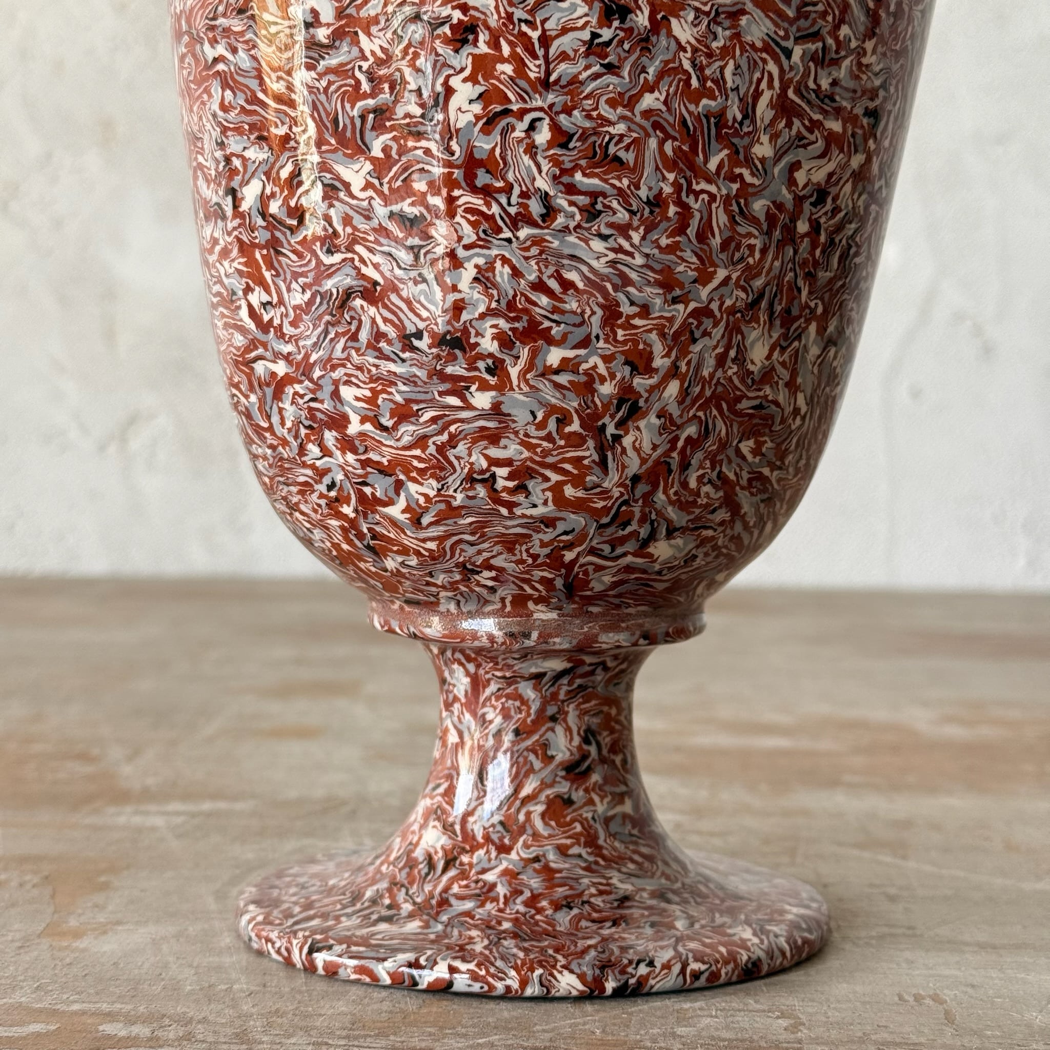 The long and meticulous technique consists of mixing different color clays in a completely arbitrary, yet fully mastered manner. It is a rigorous play with the volumes formed by the kneading of colored clay, obtained by the mixing of white clay with natural pigments. (iron, copper). Each piece, which is unique, requires several hours of manufacturing. The project is to carry on this old technique of refined artistic craftsmanship applied to everyday decorative dishes.