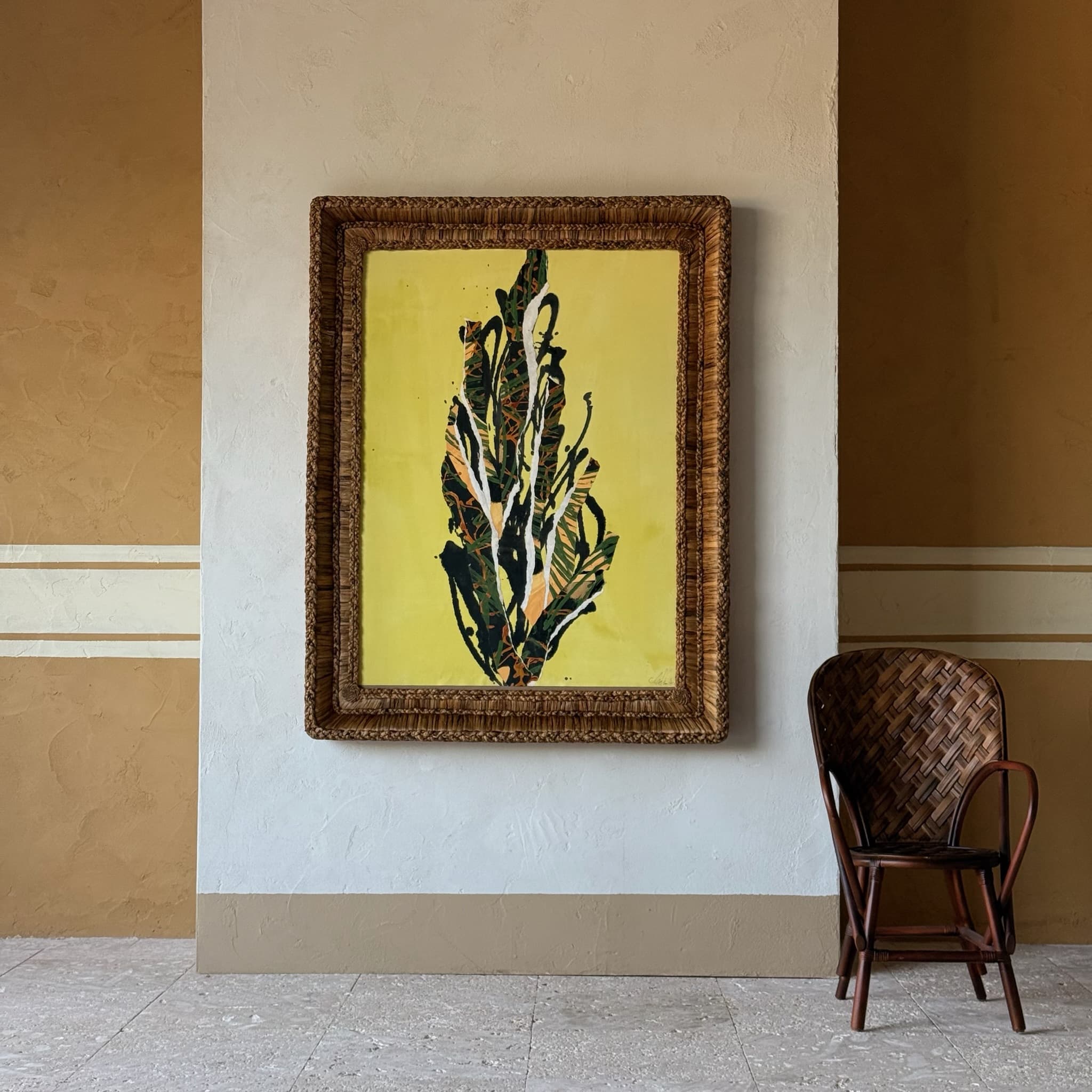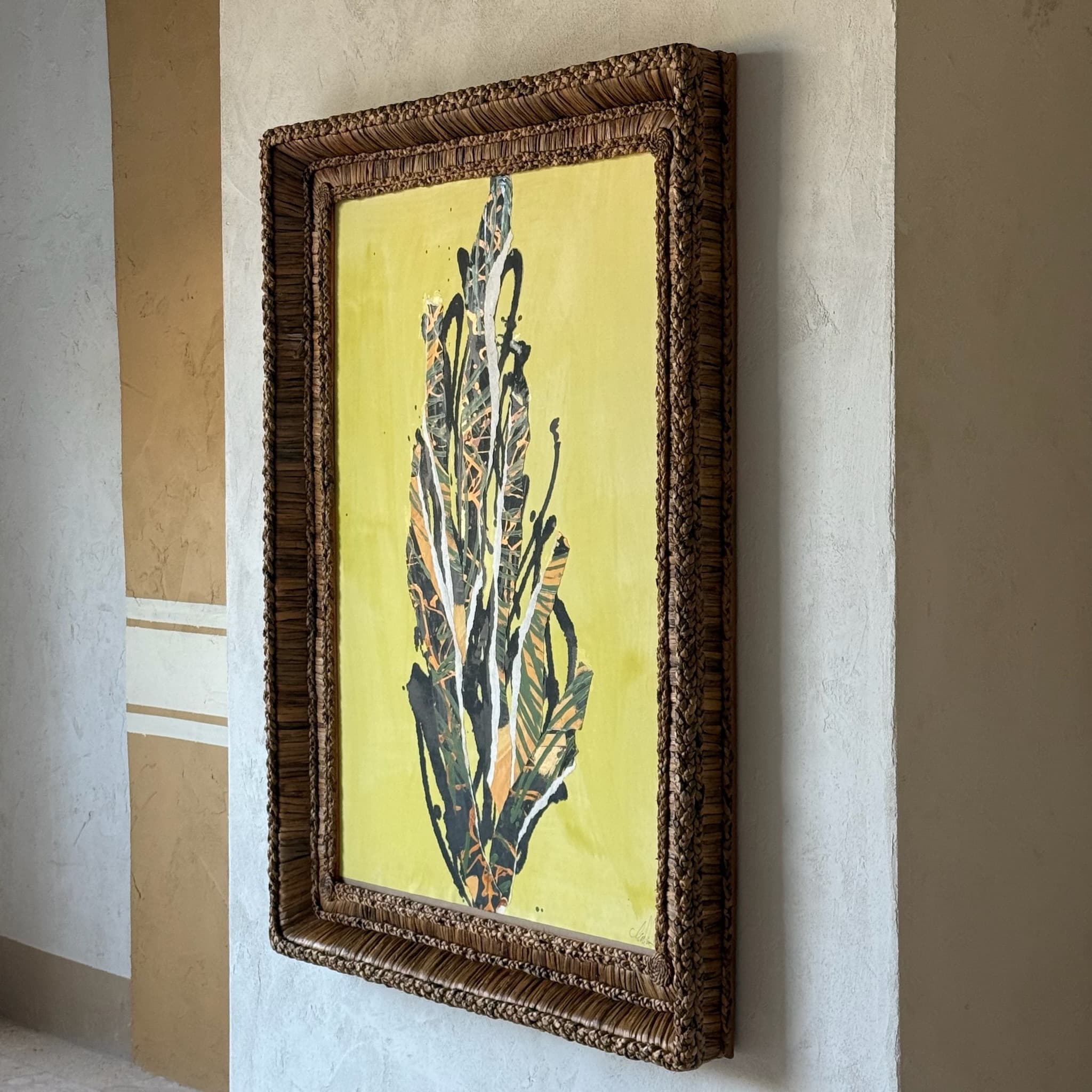 Catharine Warren artwork framed in our hand-tied and knotted Gusto Woven Frame