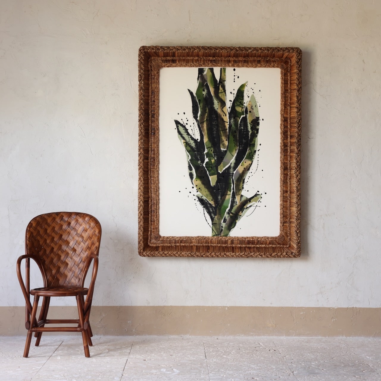 Catharine Warren artwork framed in our hand-tied and knotted Gusto Woven Frame