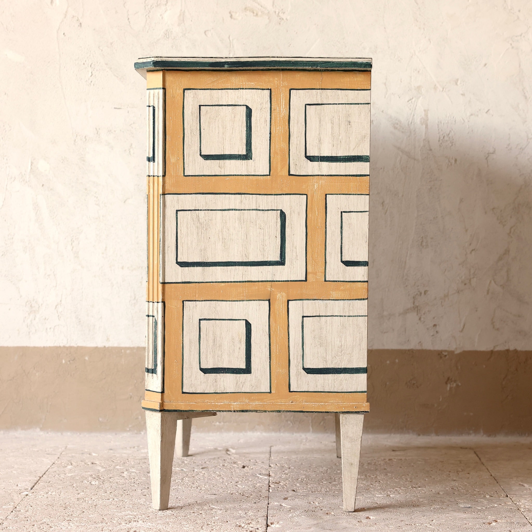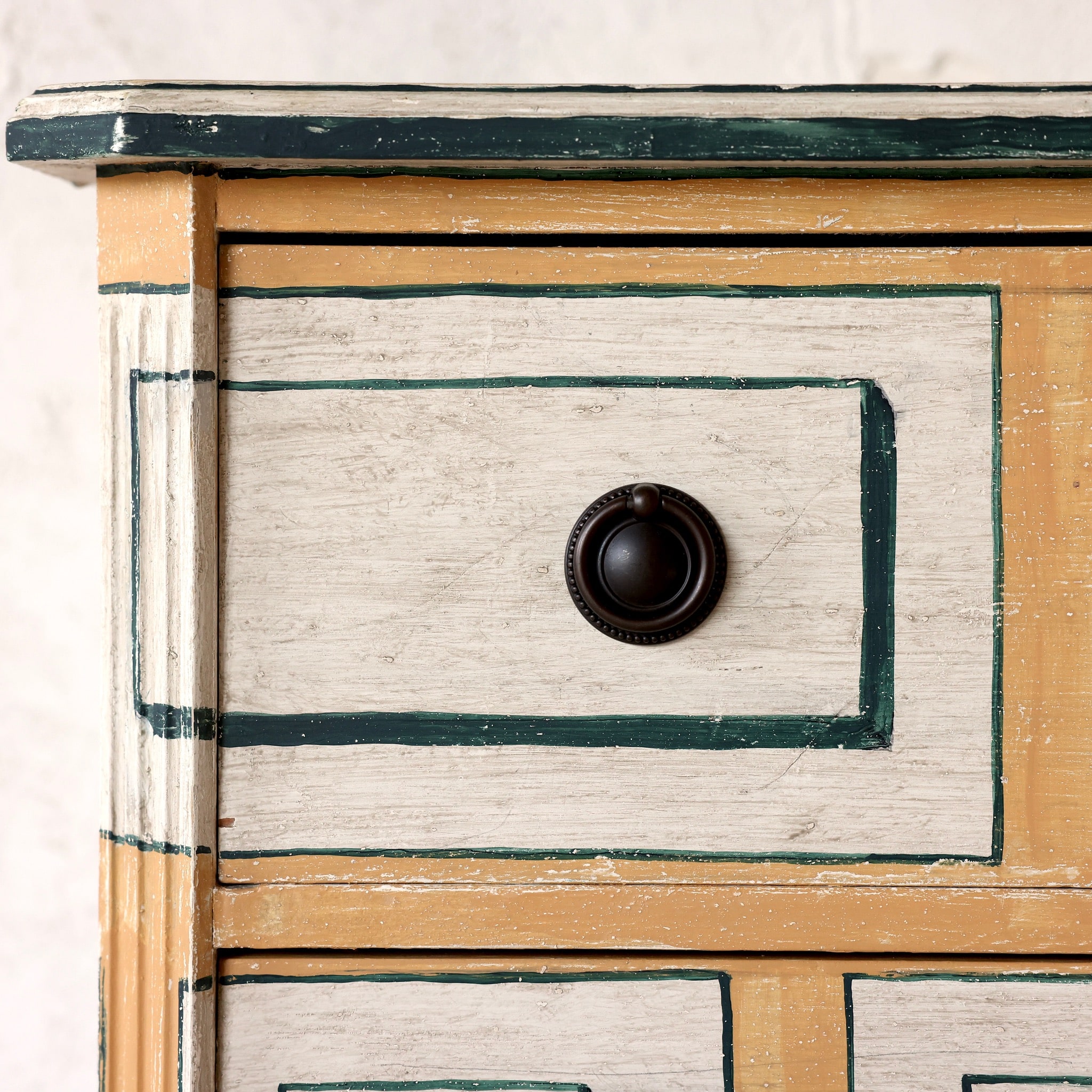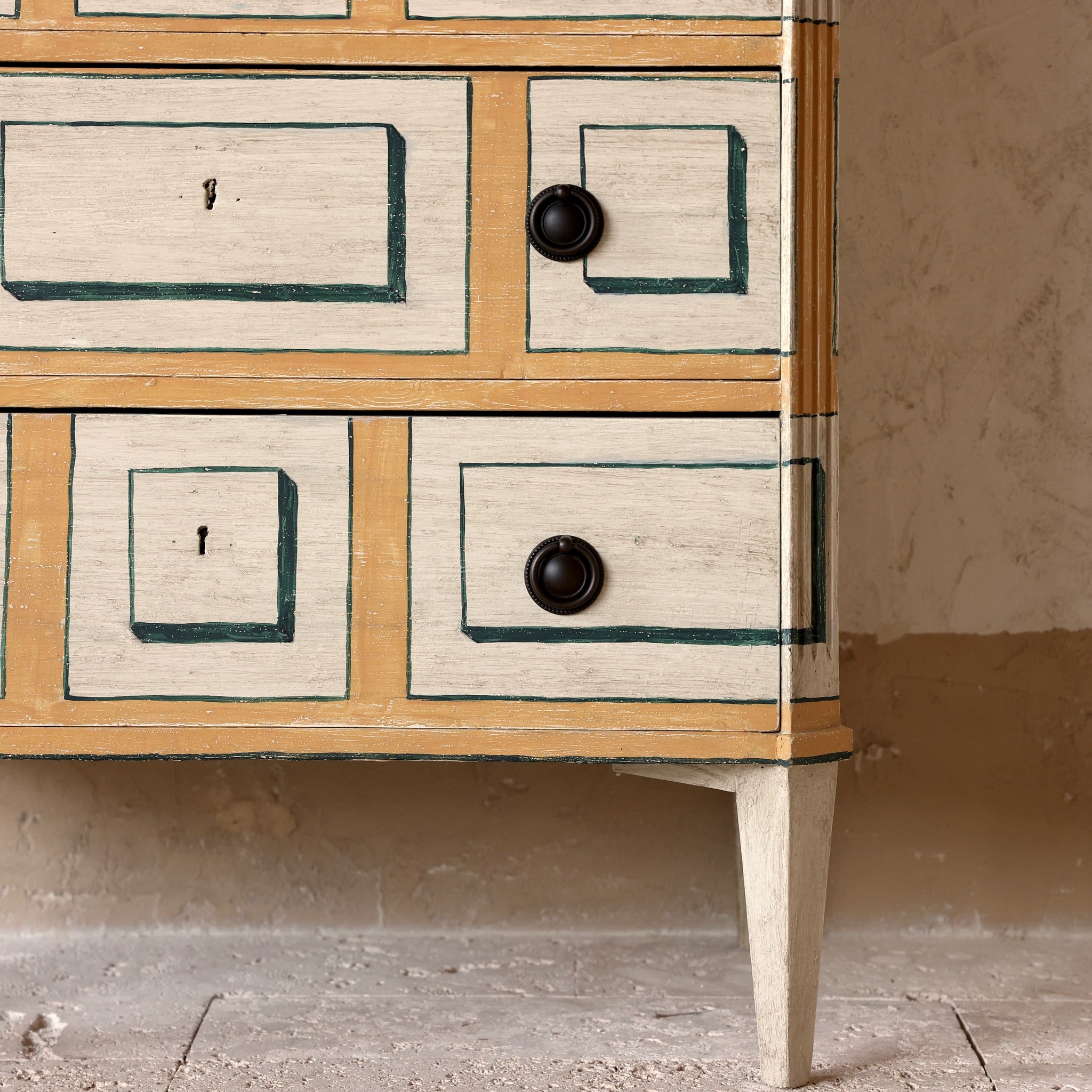 Kalmar Slott sits in the city of Kalmar Sweden originally built as a fortress the earliest dates are the 12th century. Over the centuries the fortress evolved into a castle and today is an incredible site to behold. Oozing with charm and splendid 17th and 18th century faux painting of marble, wood and stone to imitate more expensive materials as the Swedes do best it has inspired Casa Gusto to recreate a Kalmar chest inspired by a faux stone painted outside the castle.