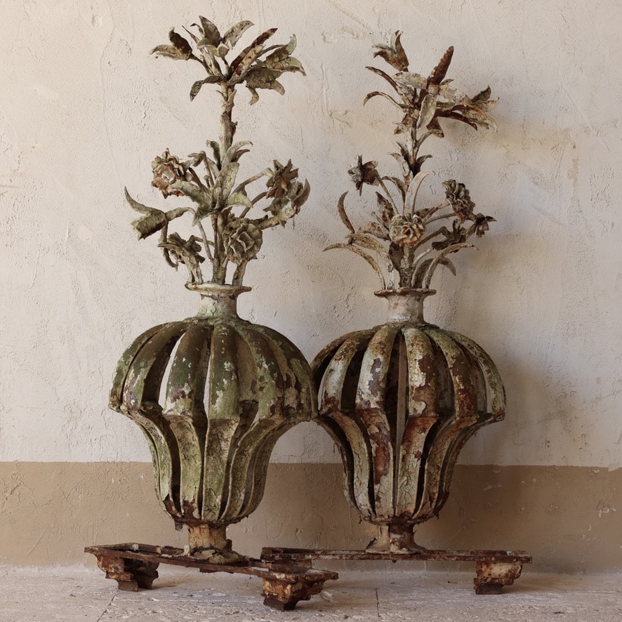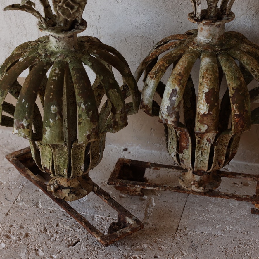 Large Pair of Late 19th C. French Forged Garden Gate Finials
