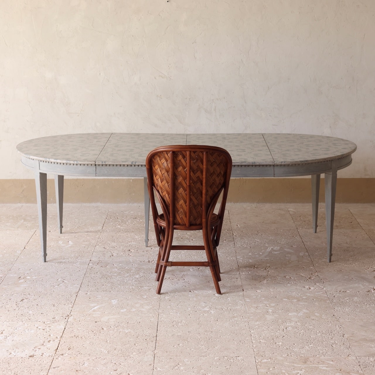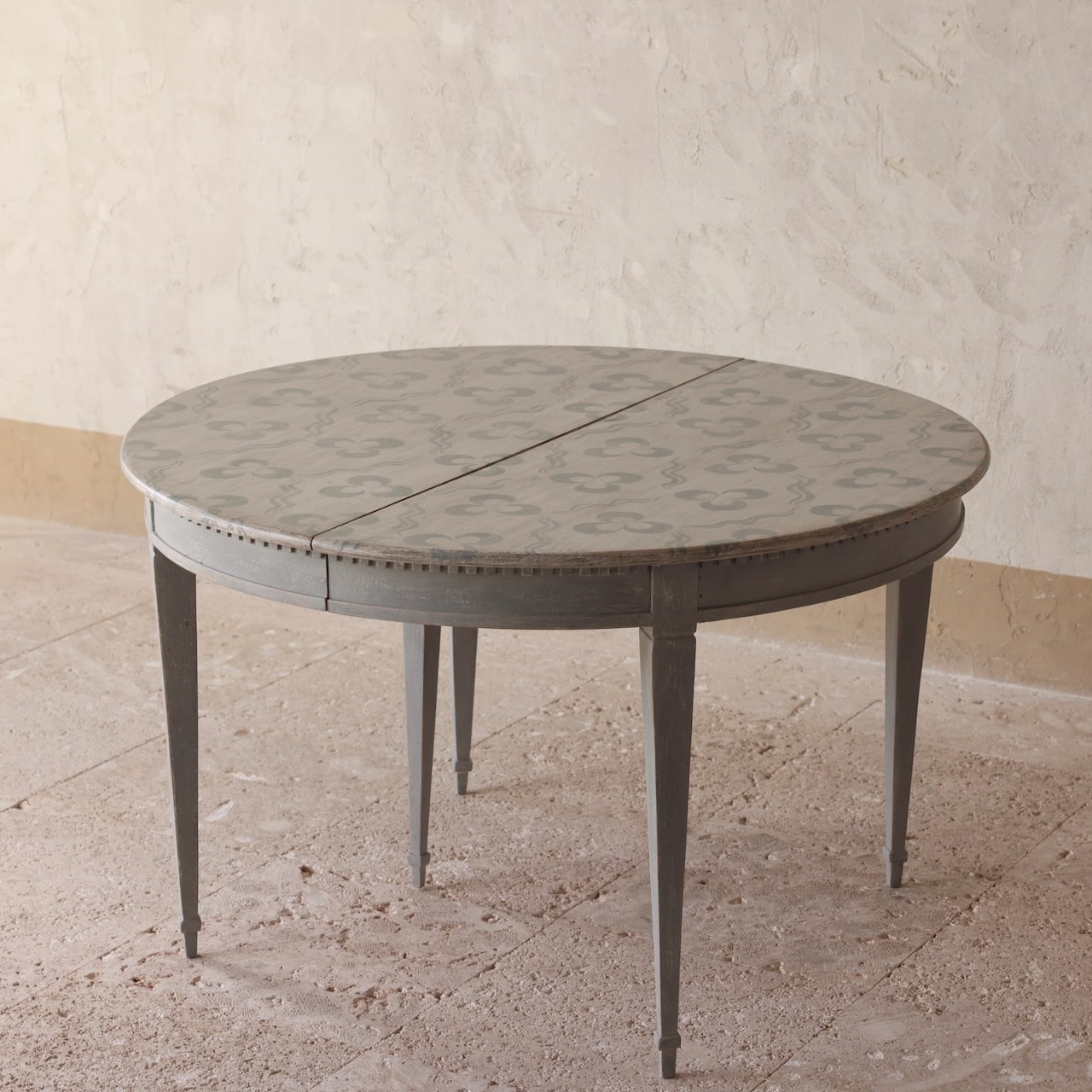 H 29.75″ x W 49.25″/ DIA 49.25″ Round/ 3 Leaves at W 22.75″ x 49.25″ each