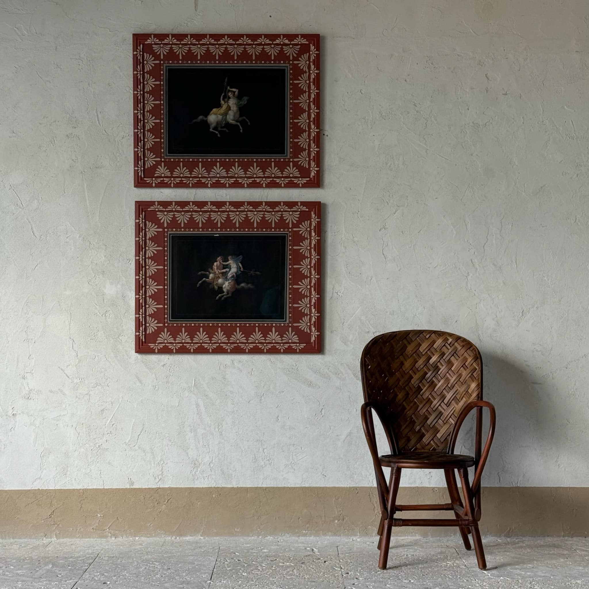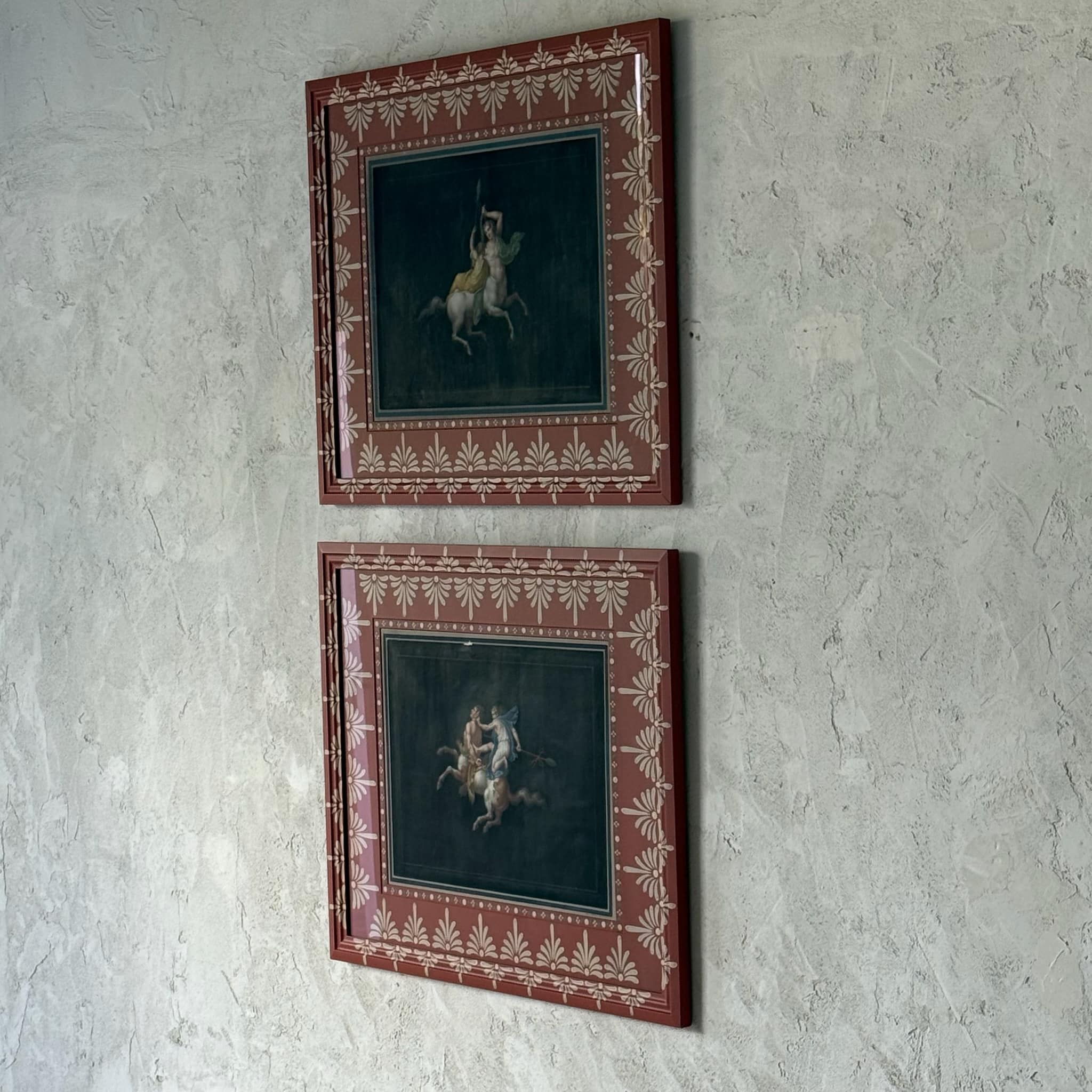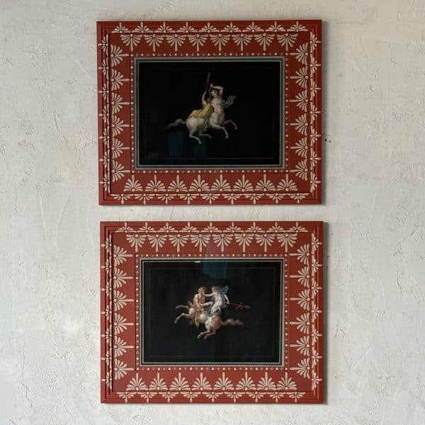Set of Two 19th C. Pompeiian Style Bacchanalian Muses Formerly of the Estate of Gianni Versace in Gusto Painted Frame and Mat