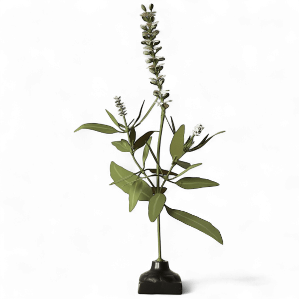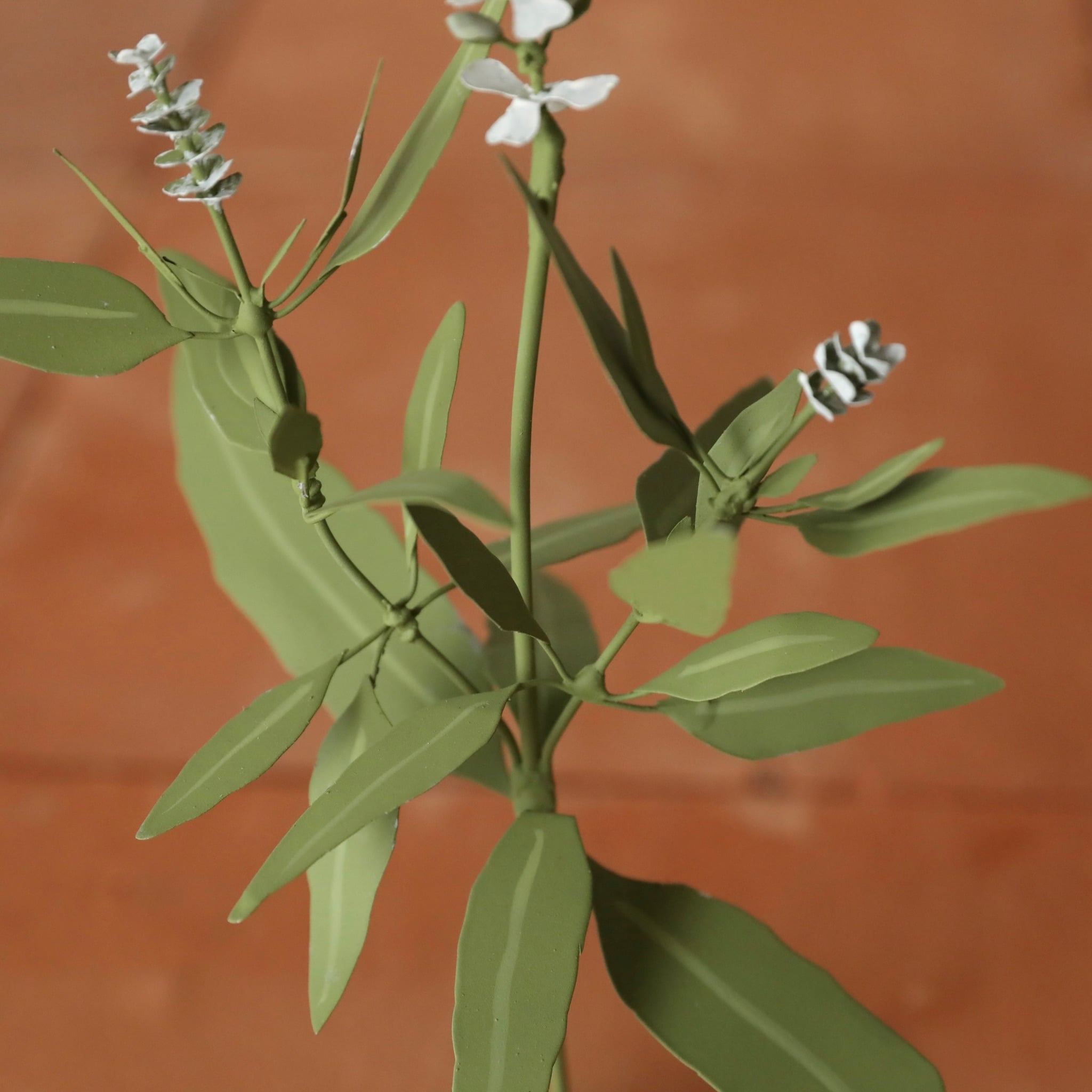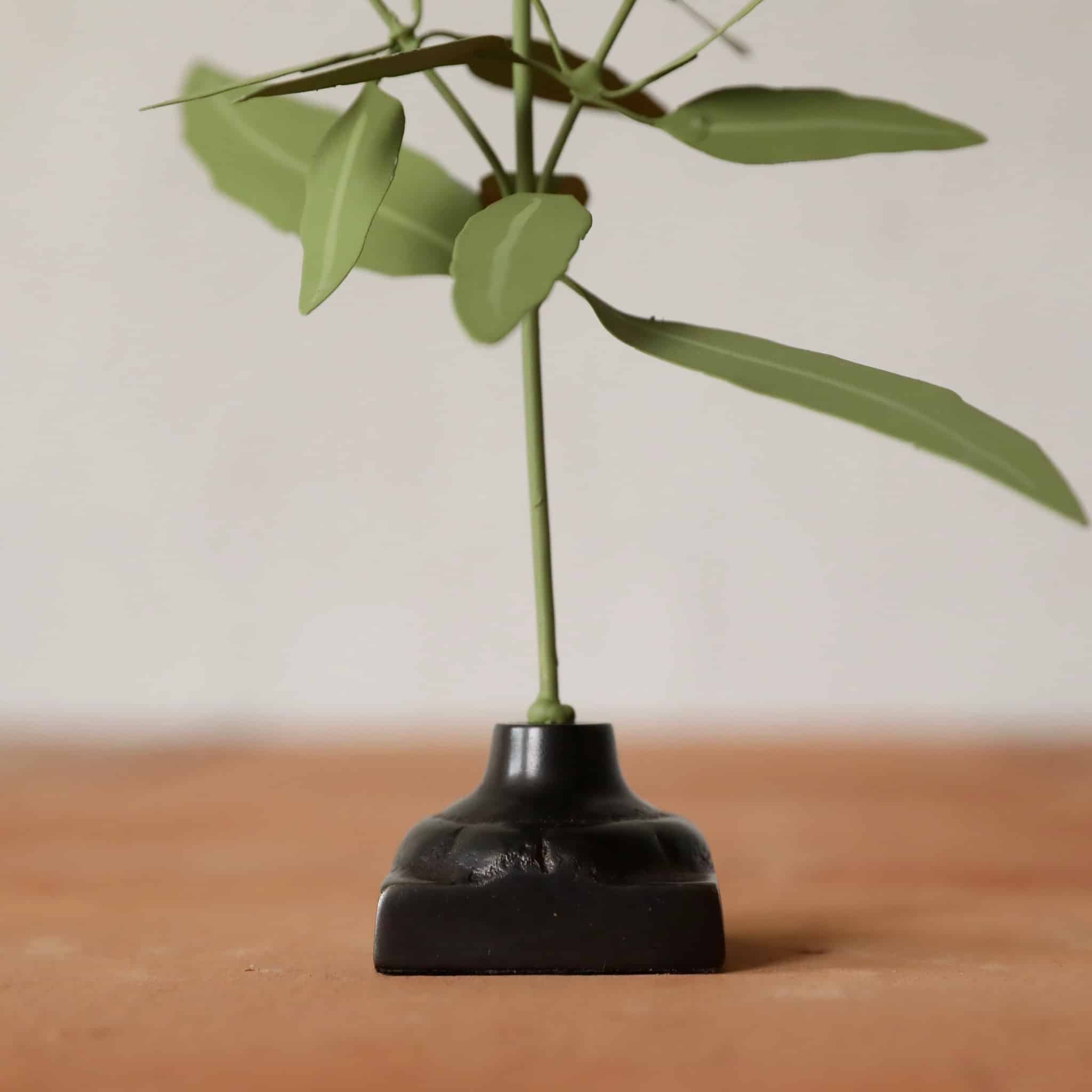 Hand-made and hand-painted metal flower with cast iron base.
