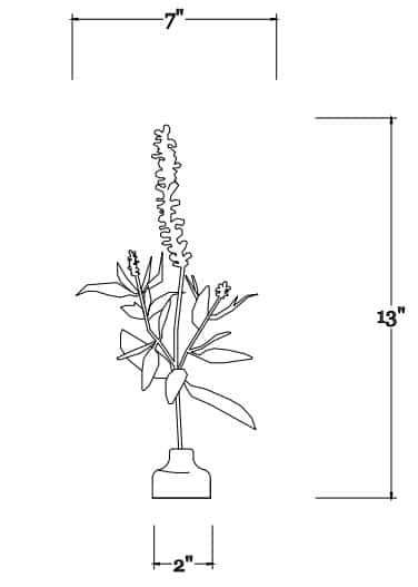 H13″ x W7″ x D6″; Base Depth: 2″x2″